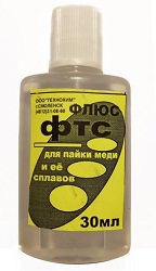 Флюс ФТС паяльный применяется для пайки меди и ее сплавов, для лужения металлических поверхностей печатных плат, выведения элементов радиоэлектроники в электронной аппаратуре, элементов радио монтажа.